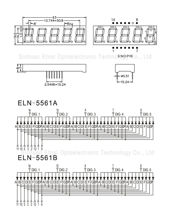 | ELN-5561BW | 0.56" 英寸 | 5位数码管 | 共阳 | 白色 |