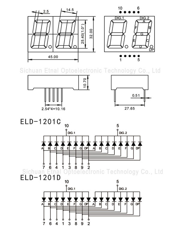 | ELD-1201DW | 1.0" 英寸 | 2位数码管 | 共阳 | 白色 |